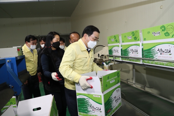 [한국Q뉴스] 허성무 창원시장은 10일 의창구 대산면에서 창원의 대표 농산물 중 하나인 청양고추 재배농가 출하·선별 작업장을 방문했다.
