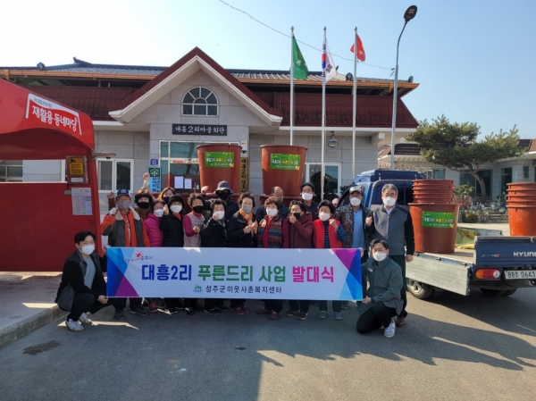 [한국Q뉴스] 성주군 이웃사촌복지센터에서는 지난 10일 성주읍 대흥2리 마을회관에서 이웃사촌복지센터 관계자와 마을주민이 참석한 가운데 푸른드리 사업 발대식을 개최했다.
