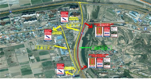 [한국Q뉴스] 함안군은 그동안 중단되어 있던 함안천 검암제 자전거도로 공사를 재개함에 따라 검암 회전교차로~함안교 구간의 교통을 통제한다고 밝혔다.