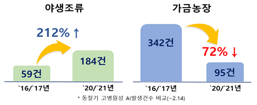 올 겨울은 야생조류에서 사상 유례없이 고병원성 조류인플루엔자 항원이 과거 가장 피해가 컸던 ’16/’17년의 3.2배 수준인 총 184건 검출되어 매우 엄중한 상황이 지속돼 왔다.