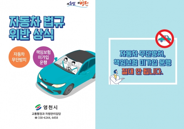 [한국Q뉴스] 영천시는 지난 10일 자동차 무단방치·무보험운행 행위 근절 홍보 리플릿을 제작해 16개 읍면동 행정복지센터에 배부했다.