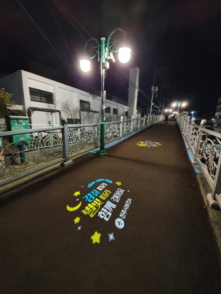 [한국Q뉴스] 진주시는 시민에게 활동적 생활환경을 제공하고자 시민들이 걷기 운동을 위해 많이 찾는 장소에 로고라이트를 설치해 건강 거리를 빛으로 밝히고 있다.