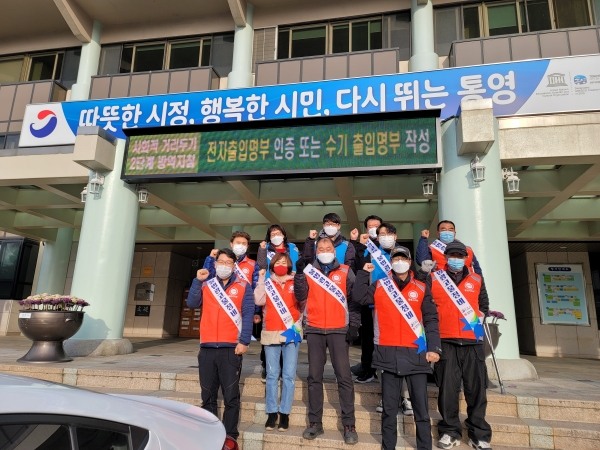 금번 설맞이 불법현수막 단속은 연휴도 반납한 채 옥외광고협회 통영시지부 회원 15명과 불법현수막 단속공무원 7명 등 총22명의 민관 합동단속반이 풀가동되어 유동인구가 많고 차량통행이 잦은 지역을 중심으로 총 120여건의 불법현수막을 철거 또는 정비·지도했다.