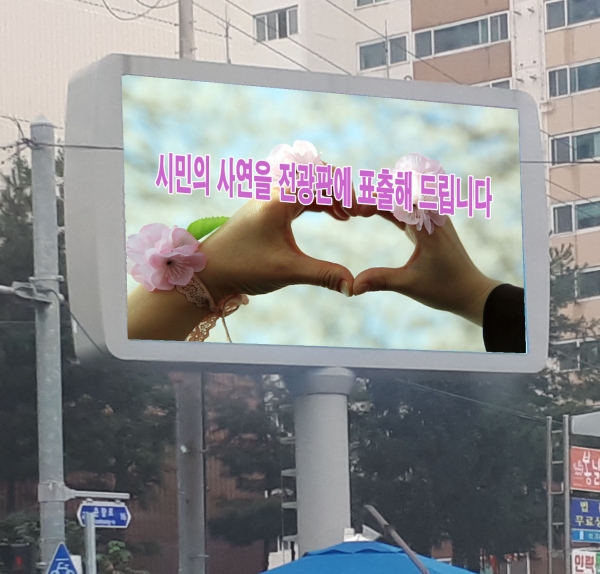 이에 따라 시는 오는 12월 31일까지 도통우체국 사거리와 이마트 주차장 사거리에 있는 LED전광판 2개소에 시민들의 다양한 소식을 송출할 예정이다.