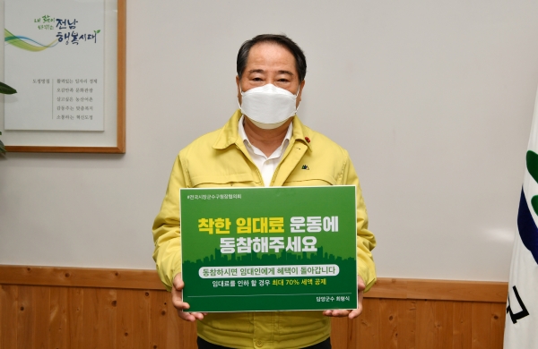 담양군은 지난 16일 최형식 군수가 전국시장군수구청장협의회에서 추진하고 있는 ‘착한 임대료운동 확산’ 챌린지에 동참했다고 밝혔다.
