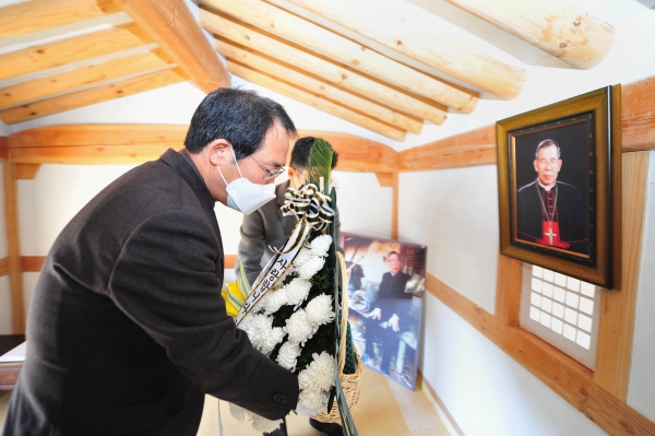 [한국Q뉴스] 군위군은 16일 김수환 추기경 선종 12주기를 맞아 김기덕 군위군수 권한대행을 비롯한 주요 간부공무원 등 코로나19 사회적 거리두기로 최소 인원이 참석한 가운데 군위읍 용대리 김수환 추기경 생가에서 추모 참배행사를 가졌다.