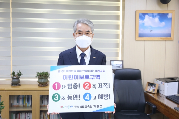 [한국Q뉴스] 박종훈 경상남도교육감이 16일 안전한 등하굣길 조성과 교통사고 예방을 위한 ‘어린이 교통안전 릴레이 챌린지’ 캠페인에 동참했다.