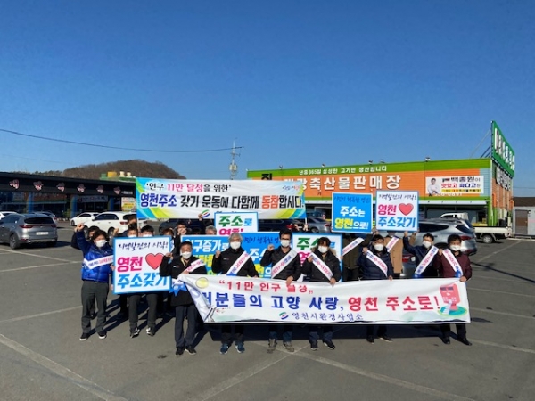 [한국Q뉴스] 영천시 환경사업소는 지난 10일 설 명절을 앞두고 10만 3천 영천 인구 달성을 위해 인구 늘리기 캠페인을 실시했다.