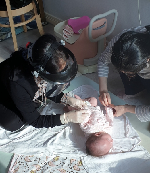 현재 코로나19 발생상황을 고려해 임산부 가정방문 시 방역 마스크 착용, 발열 여부 확인, 일회용 장갑 착용 등 예방 수칙을 철저히 준수하고 있으며 사회적 거리두기 단계에 따라 가정방문이 어려운 경우 한시적으로 전화 및 화상을 통한 비대면 건강관리 상담을 제공한다.