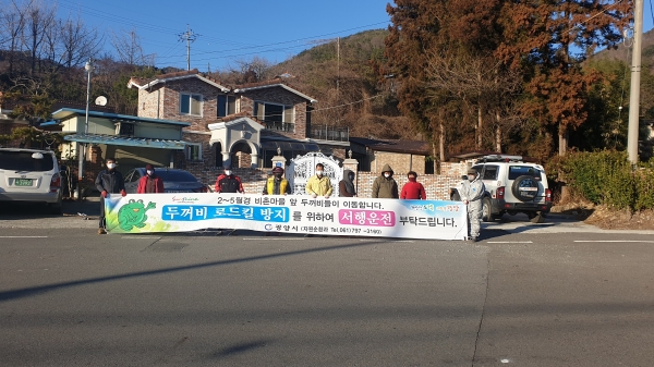 김용식 생활환경팀장은 “두꺼비 서식환경 보호를 위해 운전자분들께서는 2~5월 비평저수지 인근에서 서행운전해 두꺼비 로드킬을 방지하도록 많은 관심과 협조 부탁드린다”고 말했다.