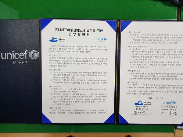 17일 여수시에 따르면 지난 5일 맺은 협약으로 아동·청소년의 권리가 보장되는 행복한 도시 조성에 유니세프와 여수시가 전략적 자문과 기술적 지원을 주고받게 됐다.