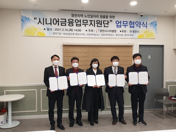 지난 16일 영천시니어클럽은 카페 모람에서 2021년 신규 사업으로 ‘시니어금융업무지원단’ 사업 추진을 위해 업무협약식을 가졌다.