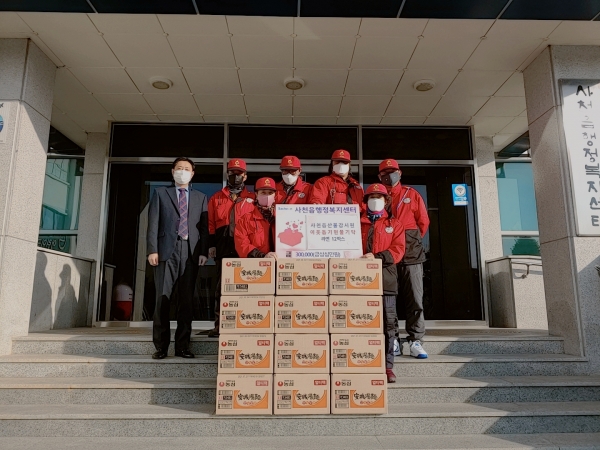 [한국Q뉴스] 사천읍 산불감시원 6명이 주변의 어려운 이웃들에게 전해달라며 라면 12박스를 17일 사천읍행정복지센터에 기탁했다.