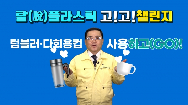 허성무 창원시장은‘1회용품 사용 안 하고 텀블러·다회용컵 사용하고’로 플라스틱 줄이기 실천을 약속했다.