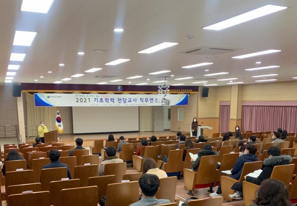 2021년 선정된 기초학력 전담교사 48명은 초기문해력과, 기초수해력 지도 역량강화를 위한 연수를 이수한 후 도내 초등학교 65교에 배치돼 초등 1~2학년 학생 중 한글 미해득과 기초 수해력 부진학생을 1대1 개별화 교육으로 지도한다.