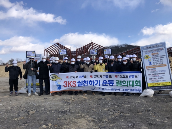 특히 회의에 앞서 한국농어촌공사 주관의 ‘건설현장 3KS 실천하기 운동 결의대회’를 통해 상주시, 한국농어촌공사 및 시공사 직원 합동으로 안전 결의를 통해 단 한 건의 안전사고 없는 건설재해 Zero를 다짐했다.