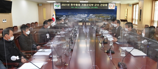 구인모 군수는 인사말에서 ‘구치소 갈등 문제’, ‘국제연극제 상표권 이전’, ‘지원과 지청 이전 문제’ 등 우리군 3대 현안과제가 잘 마무리될 수 있도록 군정에 적극 협조해준 한우협회 회원들에게 감사의 뜻을 전하고 현장에서 겪고 있는 애로사항에 대해 진솔하게 말해 달라고 당부했다.