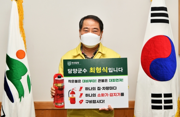 최형식 담양군수는 “코로나19로 인한 실내 활동 및 전열기구 사용 증가로 인해 화재 안전에 특히 유의해야한다”며 “우리 모두의 안전을 위해 많은 분들이 동참하길 바란다”고 당부했다.