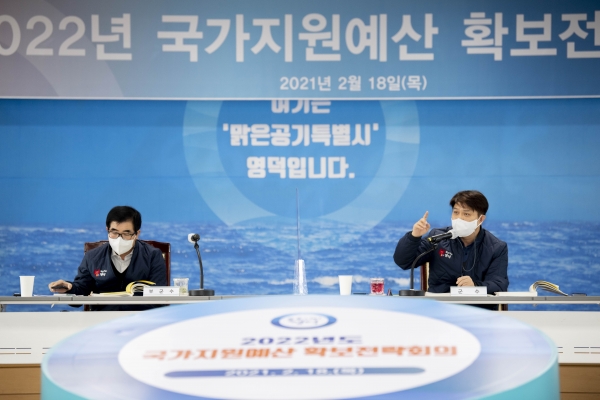 [한국Q뉴스] 영덕군 2022년도 국가지원예산 확보전략회의가 18일 영덕군청 대회의실에서 열렸다.