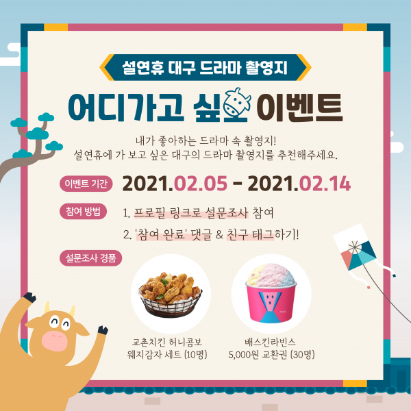 박희준 대구시 문화체육관광국장은 “코로나19로 야외활동이 제약되는 상황에서 방역수칙이 반영된 다양한 시민참여 이벤트를 통해 지친 몸과 우울한 마음을 치유할 수 있기를 바란다”고 밝혔다.