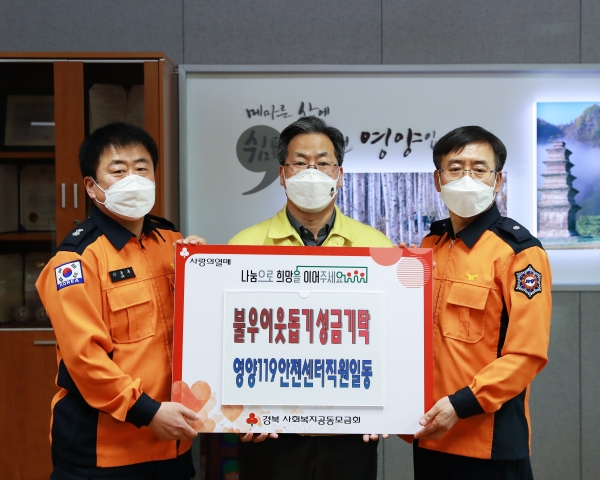 오도창 영양군지역사회보장협의체공공대표위원장은“이웃사랑 실천에 앞선 영양119안전센터 직원들에게 감사드리며 함께모아 행복금고사업을 통해 모여진 기부금으로 관내 소외된 이웃들이 어려움을 딛고 일어설 수 있도록 사랑은 나누고 행복은 더하는 영양군지역사회보장협의체가 되도록 노력하겠다”고 말했다.