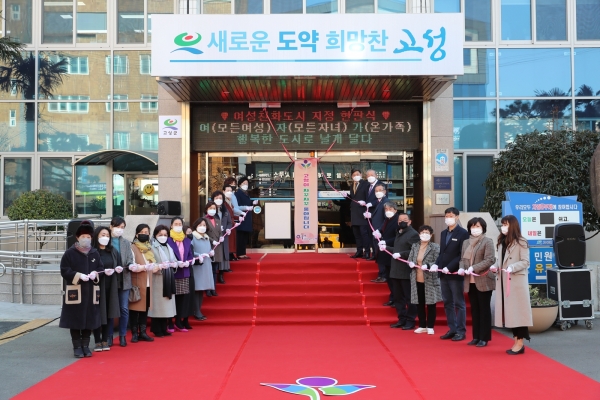 고성군은 여성친화도시 조성에 대한 그 간의 노력과 성과를 인정받아 ‘여성친화도시’로 신규 지정되는 영예를 안았으며 지난 1월 29일 여성가족부와 여성친화도시 조성 협약을 체결했다.