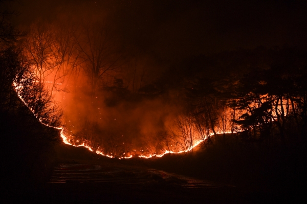 [한국Q뉴스] 영주시는 지난 21일 오후 4시경 예천군 감천면에서 발생한 산불이 영주시 장수면까지 확산됨에 따라 진화에 나섰다.
