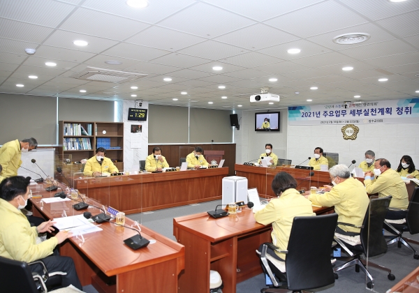 2021년 주요업무 세부실천계획 청취는 2021년 군에서 추진할 업무에 대한 전반적인 내용 청취와 그 계획을 논의하고 점검하며 적극적인 개선요구와 함께 발전적인 대안을 제시해, 군민의 삶의 질 향상과 군정발전에 기여하는데 있다.