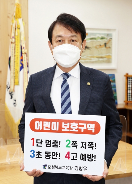 [한국Q뉴스] 김병우 충청북도교육감이 ‘어린이 교통안전 릴레이 챌린지’에 동참했다.