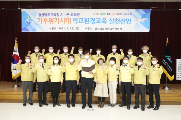 [한국Q뉴스] 경상남도교육청 소속 18개 시·군교육지원청 교육장들은 23일 하동교육지원청에서 ‘기후위기시대 학교환경교육 실천선언’을 발표하고 생태교육으로 대한민국 교육변화를 주도해 ‘K-환경교육’의 새 역사를 쓰겠다고 선언했다.