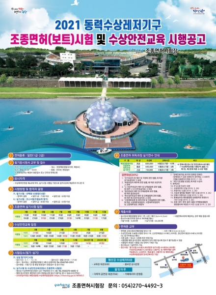 [한국Q뉴스] 포항시는 오는 3월부터 12월까지 2021년 동력수상레저기구 조종면허실기시험 20회와 수상안전교육 30회를 시행한다.