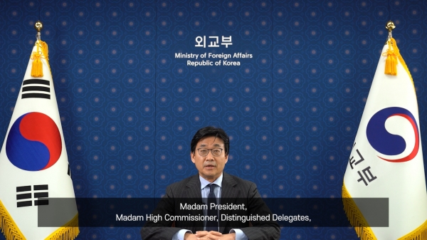 [한국Q뉴스] 최종문 외교부 제2차관은 지난 23일 오후 화상회의로 진행된 ‘제46차 유엔 인권이사회’ 고위급회기에서 사전 녹화 영상을 통해 기조연설을 실시하고 인권 보호·증진에 대한 우리의 기여 의지를 표명했다.