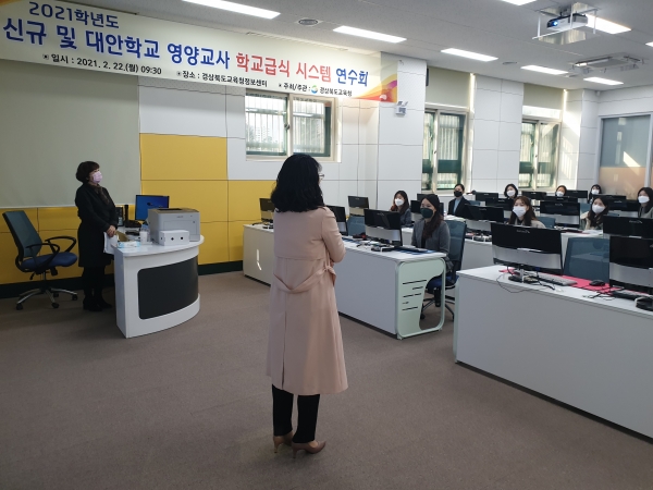 [한국Q뉴스] 경북교육청은 지난 22일 경상북도교육청정보센터에서 신규 영양교사 33명과 대안학교 영양교사 6명을 대상으로 ‘학교급식 시스템 활용 연수와 각종 기안 및 업무처리 방법’에 대한 연수를 했다.