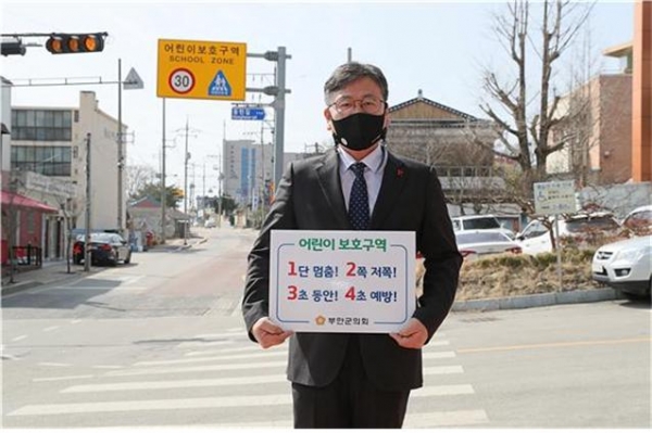 [한국Q뉴스] 부안군의회 이강세 의원이 지난 24일 안전한 등하굣길 조성과 어린이 교통사고 예방을 위한 ‘어린이 교통안전 릴레이 챌린지’ 캠페인에 동참했다.