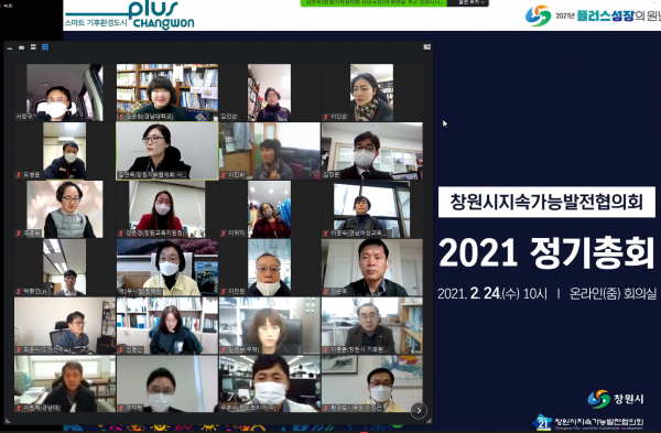[한국Q뉴스] 창원시 지속가능발전협의회는 24일 오전 10시 2021년 제1차 정기총회를 화상회의 시스템인 줌을 통해 온라인으로 개최했다.