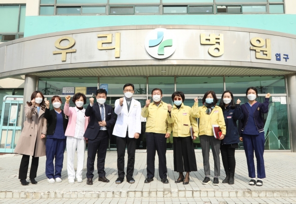 백신접종과 관련해 조근제 함안군수는 2월26일 시행하게 되는 제1호 접종기관인 우리병원을 2월24일 방문해 의료기관으로서 코로나19 예방접종에 적극 동참해준 병원장에게 감사와 격려의 말을 전했다.