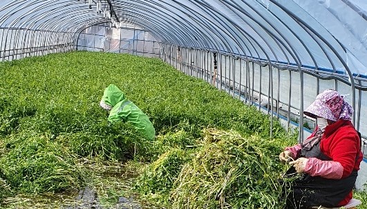 [한국Q뉴스] 청정 지리산의 맑고 깨끗한 물을 먹고 자라 싱싱하고 영양이 풍부한 하동 청학골 봄 미나리가 본격 출하하기 시작했다.