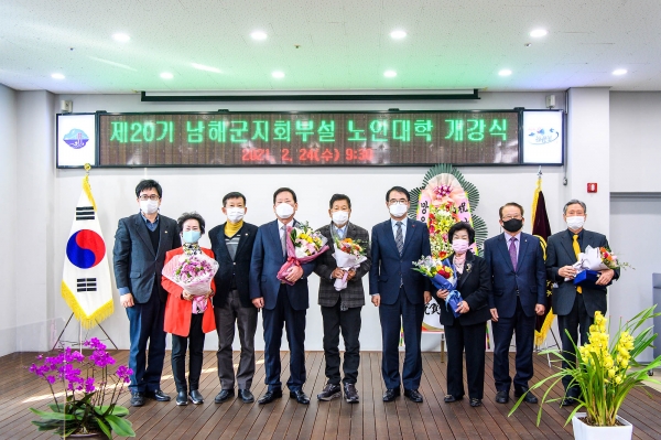 [한국Q뉴스] 남해군은 지난 2월 24일 사)대한노인회 남해군지회 노인대학 개강식을 기해 노인들의 권익신장과 사회봉사활동에 앞장서 노인복지 향상에 기여한 퇴임 하성관 지회장과 서정길 노인대학장에게 공로패를 수여했다.