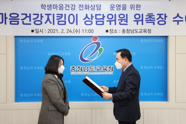 [한국Q뉴스] 충남교육청은 학생마음건강지킴이 전화 상담을 운영하는 상담위원 20명에게 지난 24일 위촉장을 수여했다.