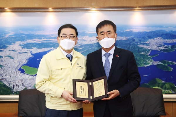 [한국Q뉴스] 허성무 창원시장은 25일 오전 11시30분 접견실에서 지역경제 발전에 기여한 공이 큰 창원상공회의소 한철수 前 회장에게 감사패를 전달했다.
