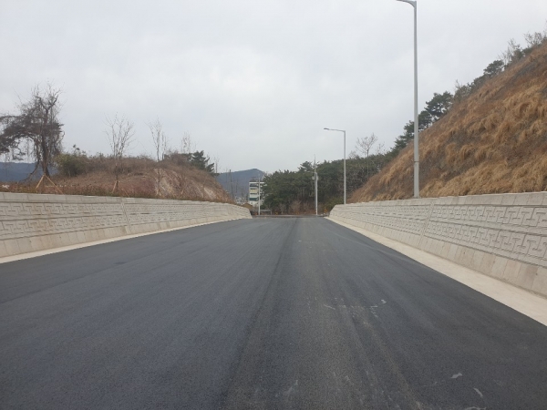 본 공사는 당초 기존도로를 2차선에서 3차선으로 1개 차선을 확장하고 일부를 가감속 차로로 만들 예정이었으나, 도로를 이용하는 운전자들의 교통 안전성, 편의 향상 및 도로미관 개선을 위한 영덕군의 건의가 반영돼 도로경사를 완화하고 조경 식재가 추가됐다.