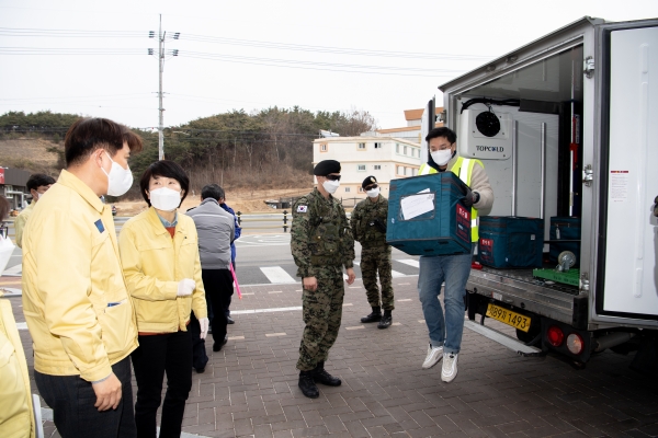 오늘 도착한 백신은 1차 접종 400명분으로 3월3일부터 효 요양병원, 제일요양병원, 행복마을, 해맞이 실버타운, 희망마을, 샛별노인복지센터 등에서 접종이 시작된다.