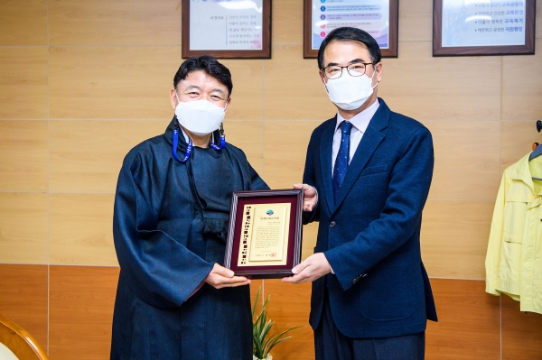 [한국Q뉴스] 남해군은 25일 안진수 경상남도 남해교육지원청 교육장에게 ‘명예 남해군민패’를 전달했다.