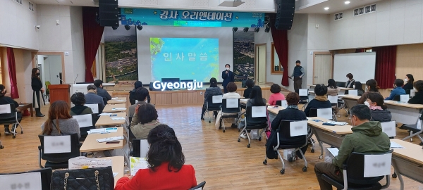 [한국Q뉴스] 경주시 평생학습가족관은 평생학습 정규강좌 개강을 앞두고 지난달 26일 오전 11시와 오후 7시, 두 차례에 걸쳐 ‘2021년 상반기 평생학습 강사 오리엔테이션’을 가졌다고 2일 밝혔다.