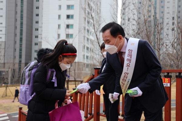 김교육감은 개학 첫날, 충남에서 학생 수가 가장 많은 천안아름초등학교를 방문해 학생 등교맞이와 학교의 방역 상황을 둘러보았다.