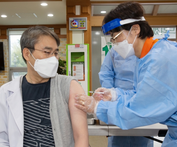 [한국Q뉴스] 칠곡군은 2일 이환곤 군립노인요양병원 진료원장의 코로나19 백신접종을 시작으로 집단 면역 확보를 위한 9개월간의 대장정에 돌입했다.