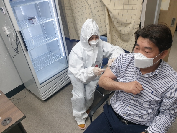 의성군의 1호 접종자는 해안 1병원에서 근무하는 권모씨로 65세 미만의 우선 접종대상자에 해당되어 이날 접종을 받게 됐다.
