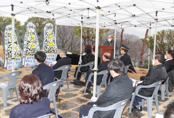 이번 3·1절 기념식은 코로나19 사회적 거리두기 1.5단계 하향 조정으로 독립유공자 유족과 기관단체장 등 50여명을 초청해 진행했다.