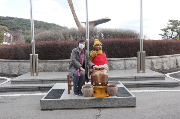 [한국Q뉴스] 경기도의회 교육행정위원회 박옥분 의원은 2일 경기도의회 소녀상 앞에서 일본군 ‘성노예’ 피해자를 매춘부로 규정한 존 마크 램지어 교수를 학자에게 요구되는 공정성 및 책임성을 상실했다며 규탄하고 미쓰비시 불매운동 전개 필요성에 대해 언급했다.
