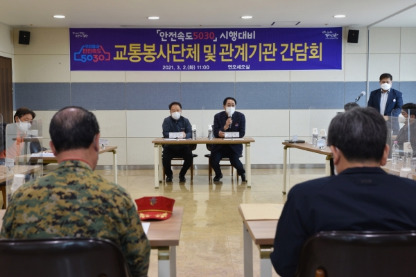 간담회는 지난해 한 해 동안 각종 행사 교통봉사와 더불어 교통사고 예방 활동을 위해 노력해준 교통봉사단체들의 그간의 노고에 감사를 전하고 안전속도 5030 정책의 구체적인 내용과 중요 변경사항 및 관계기관들의 준비사항을 공유하고 효율적인 홍보방안을 모색하기 위해 마련됐다.